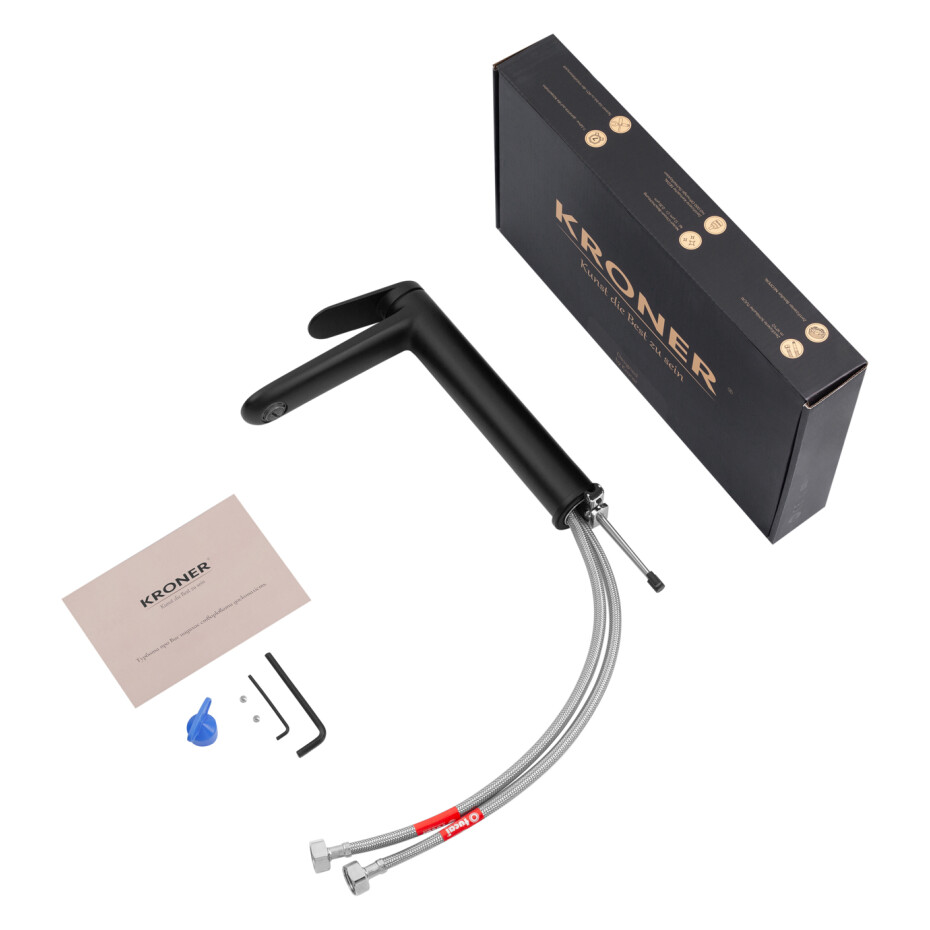 Змішувач Kroner Element 211111-3801— елегантне рішення для умивальника з підвищеним комфортом використання. Завдяки збільшеній висоті і подовженому виливу ідеально підходить для глибоких раковин або накладних чаш.