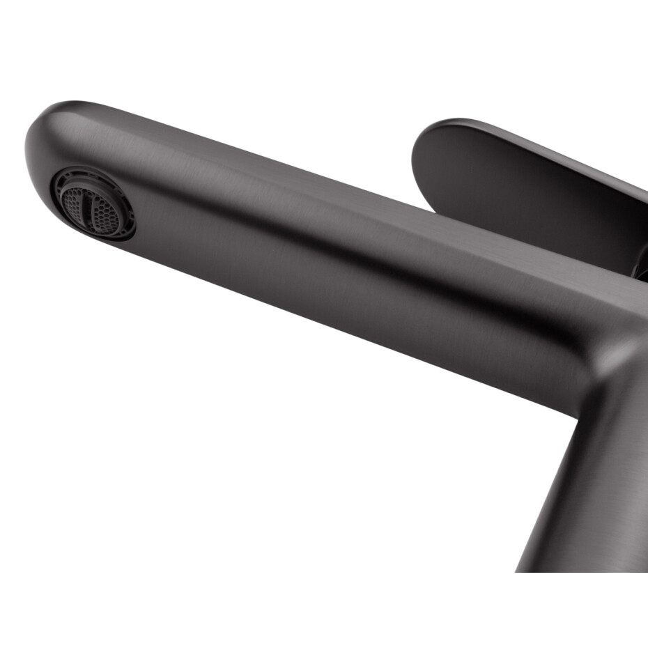 Змішувач для раковини Kroner Element 211111-5301 (графіт) — стильне і функціональне рішення для сучасної ванної кімнати. Глибокий графітовий колір з матовим покриттям надає інтер'єру стриману елегантність і підкреслює актуальний дизайн простору. Матова поверхня виглядає благородно, менше схильна до появи слідів від води та відбитків пальців, що спрощує догляд.
