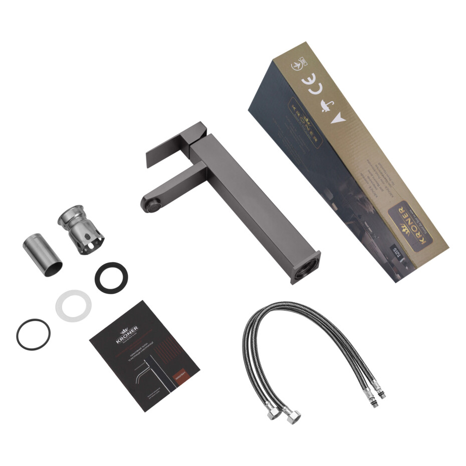 Змішувач для раковини Kroner KRP Edelstahl Kubus – PVD010-3: сучасний стиль і функціональність в одному образі.