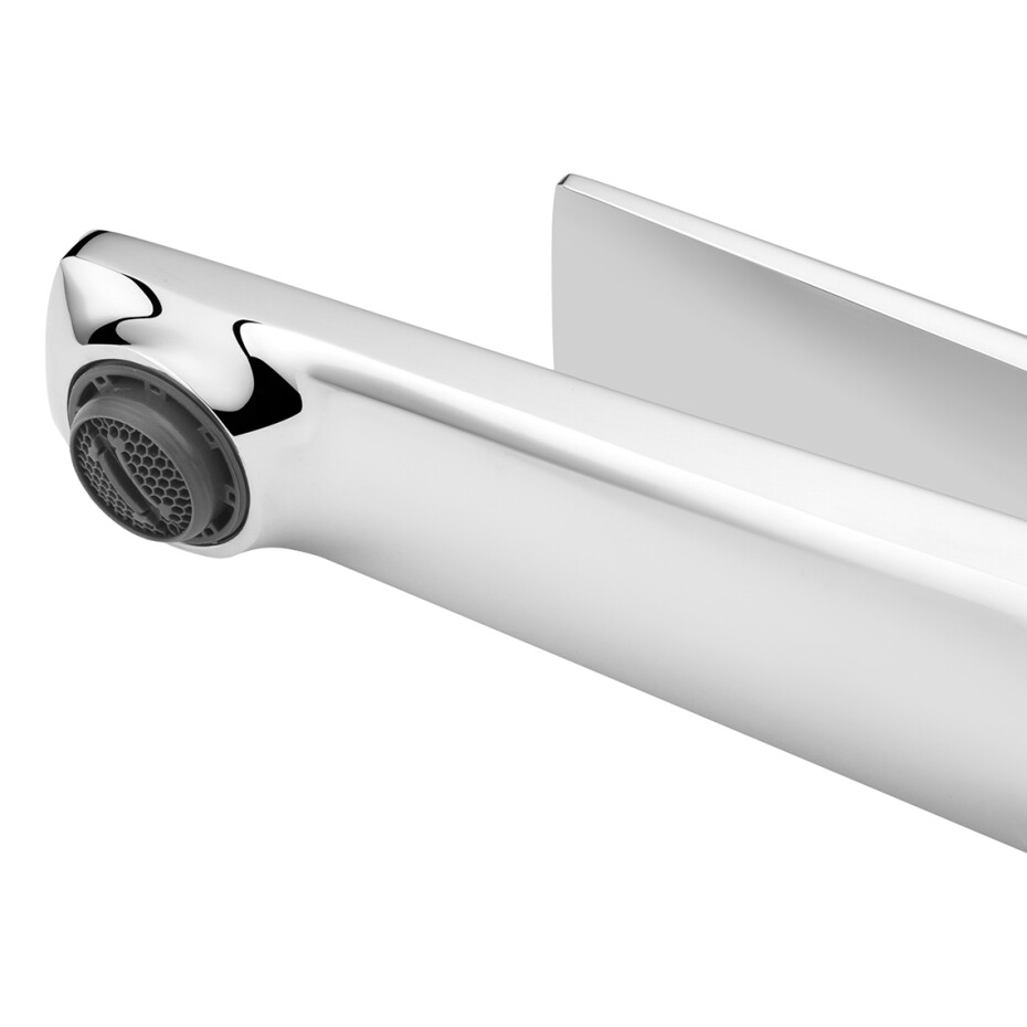 Корпус змішувача виготовлений із високоякісної латуні та вкритий глянцевим хромом, який забезпечує стійкість до зношування й зручність у догляді. Лаконічні плавні лінії та литий вилив створюють сучасний вигляд, що гармонійно впишеться у ванну кімнату.