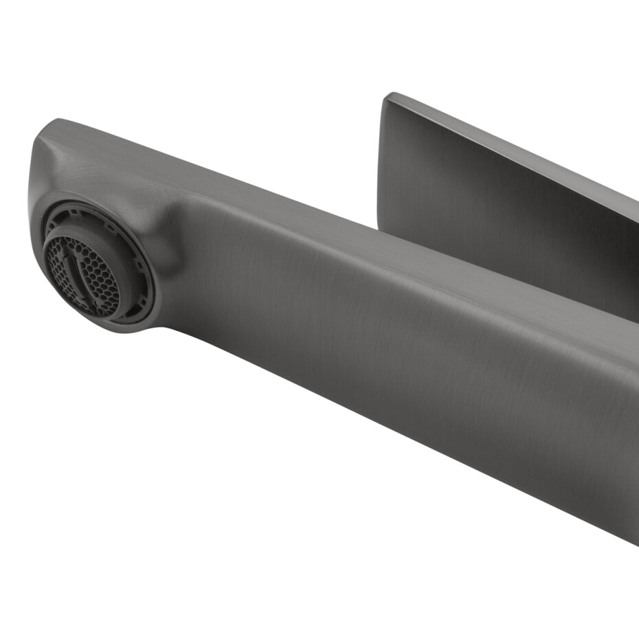 Змішувач має елегантну матову поверхню, яка не тільки додає сучасний блиск вашій ванній кімнаті, але й полегшує догляд виробу. Його колір у графітовій гамі надає інтер'єру особливого акценту.Лаконічні плавні лінії та литий вилив створюють сучасний вигляд, що гармонійно впишеться у ванну кімнату.