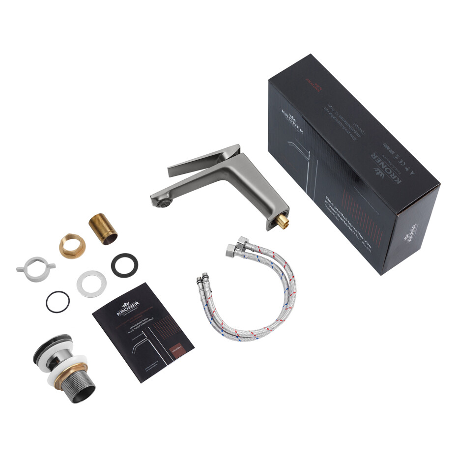 Опис до товару: Змішувач для раковини Kroner KRP Ersel - GRP0111BV з донним клапаном