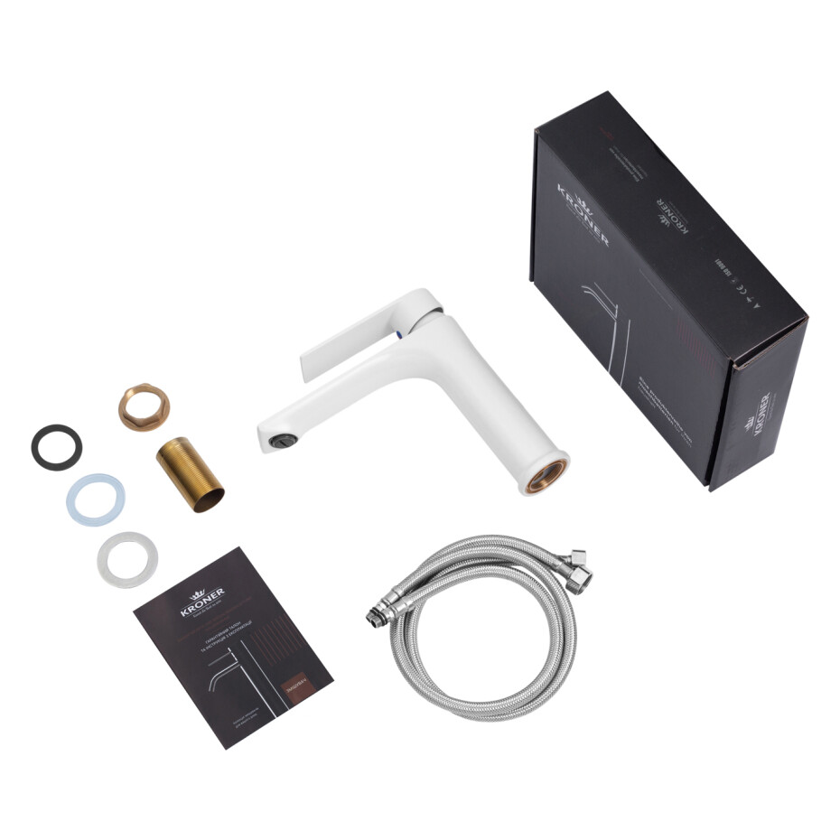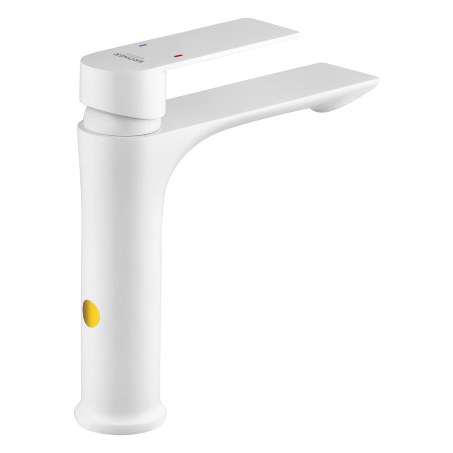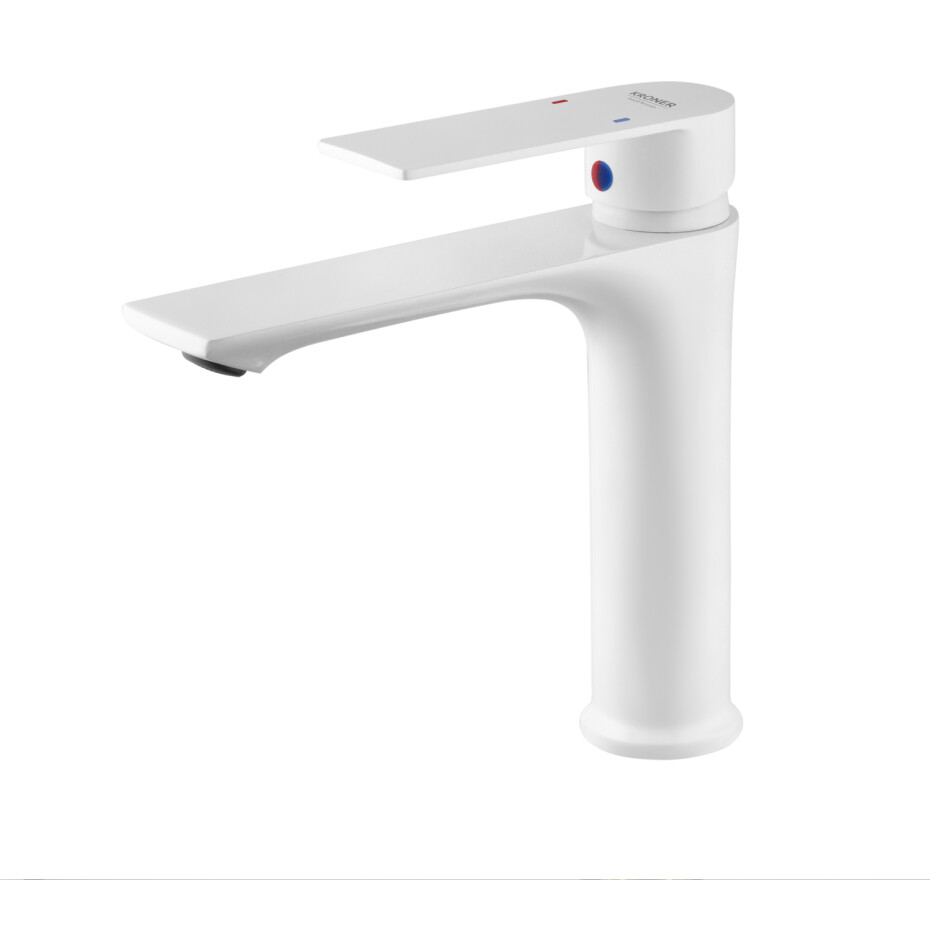 Змішувач для раковини Kroner KRP Jena-W010 (білий) – стильний та сучасний змішувач, виконаний у білому кольорі, що ефектно підкреслює інтер'єр ванної кімнати. Біле покриття надає моделі акуратного і свіжого вигляду, гармонійно доповнюючи інтер'єр у стилях мінімалізм, модерн або скандинавський дизайн.
