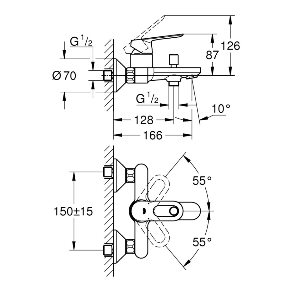 Змішувач одноважільний для ванни Grohe BauLoop (23603000) виготовлено з міцної і зносостійкої латуні з рівномірним хромованим покриттям, завдяки якому виріб має привабливий зовнішній вигляд і стійкий до механічних пошкоджень. Подача води регулюється за допомогою зручного важеля, а перемикання в душовий режим - дивертором. Декоративні накладки приховають всі похибки монтажу.