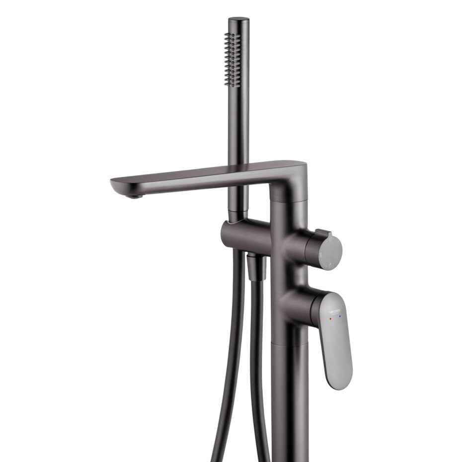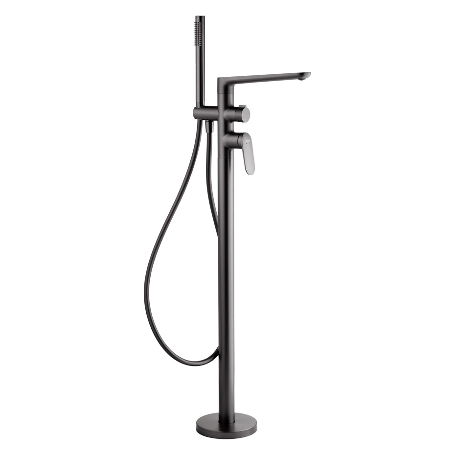 Підлогова конструкція ідеально підходить для установки поруч з окремою ванною, додаючи зоні водних процедур виразний дизайнерський елемент. Змішувач оснащений ручною лійкою, яка забезпечує зручність у використанні — її легко тримати в руці для ополіскування, миття та інших водних процедур.