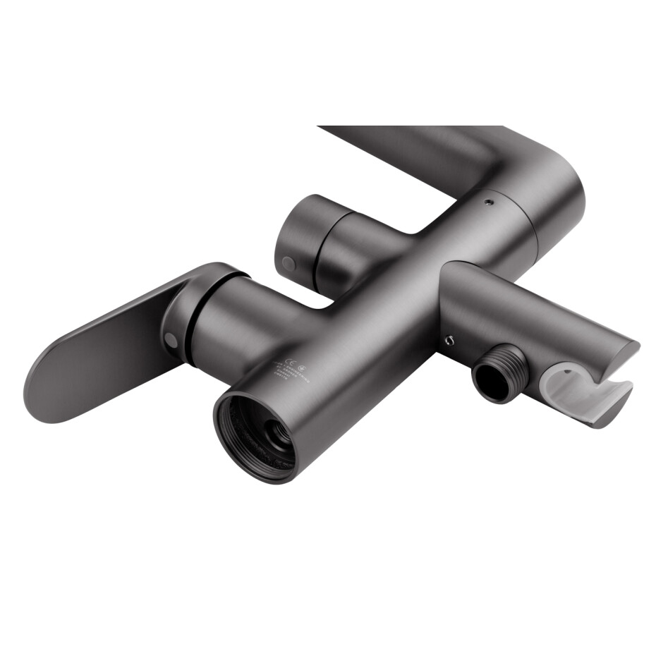 Плавний хід важеля дозволяє точно регулювати температуру і напір води, а продуманий вилив робить наповнення ванни зручним і швидким. Матова графітова поверхня стійка до слідів води та відбитків пальців, легко очищається і довго зберігає акуратний зовнішній вигляд.
