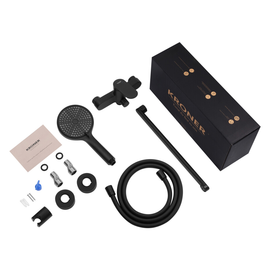 У комплект входить душовий гарнітур: ручна лійка з 3 режимами струменя, шланг та тримач — все необхідне для комфортного користування.