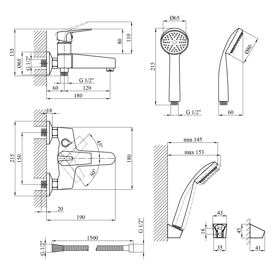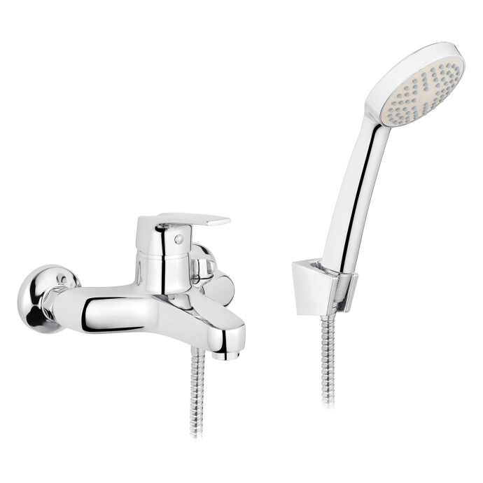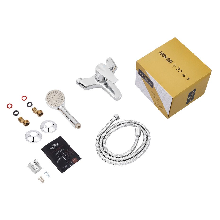 Комплектація: Змішувач, лійка для ручного душу, душовий шланг, кронштейн для ручного душу, кріплення, інструкція.