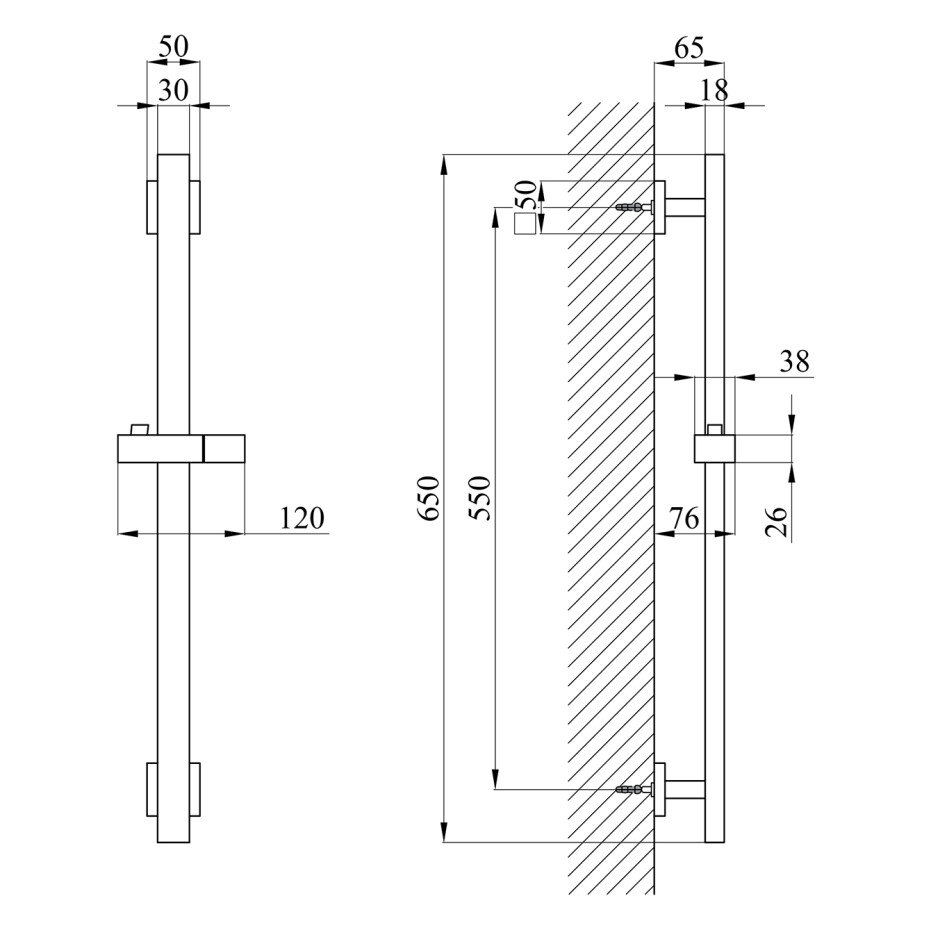 * Висота: 650 мм — універсальний розмір, що підходить для більшості душових зон.