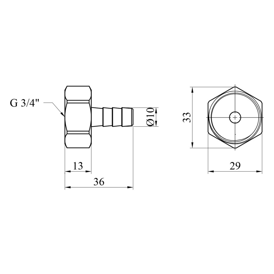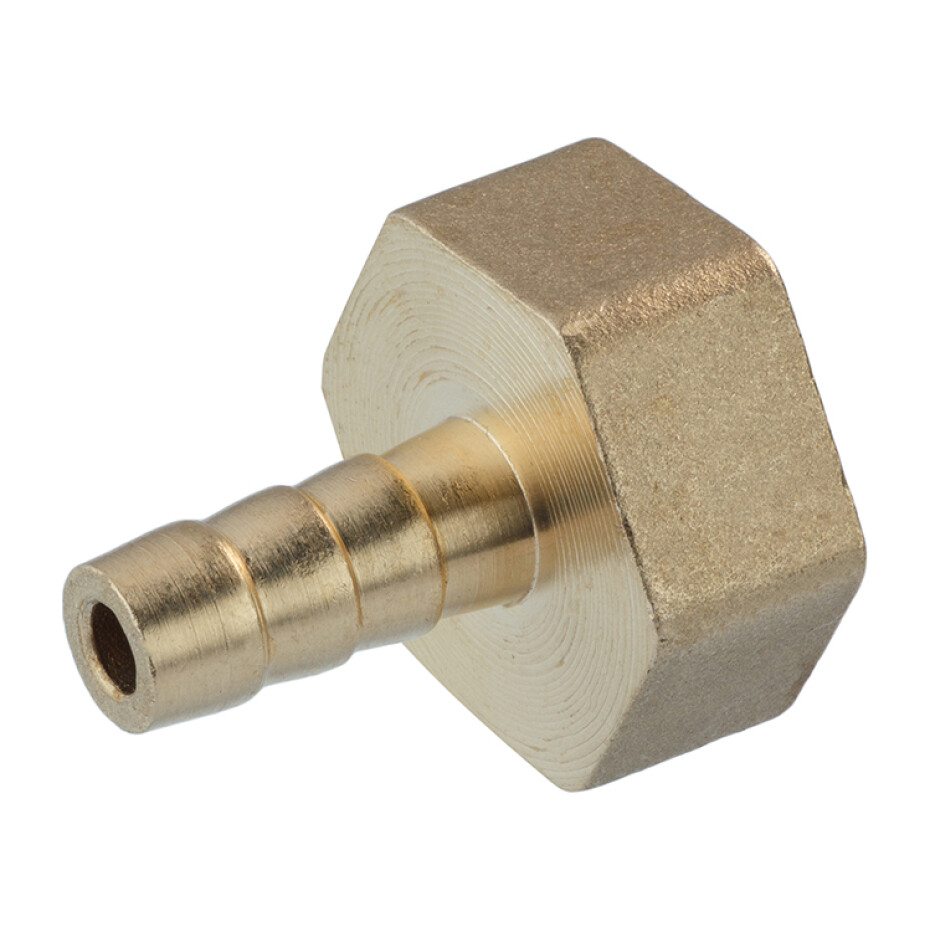 Штуцер LexLine 3/4" РВ, D=10 мм латунний УК0003-0 — це фітинг, виготовлений із латуні, призначений для під'єднання гнучких шлангів або труб до елементів трубопровідної арматури чи обладнання, що мають зовнішнє різьблення 3/4 дюйма. Він має внутрішнє різьблення 3/4 дюйма (РВ — різьблення внутрішнє) з одного боку і ялинковий наконечник (під шланг) діаметром 10 мм з іншого.