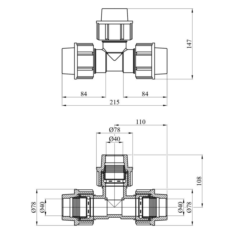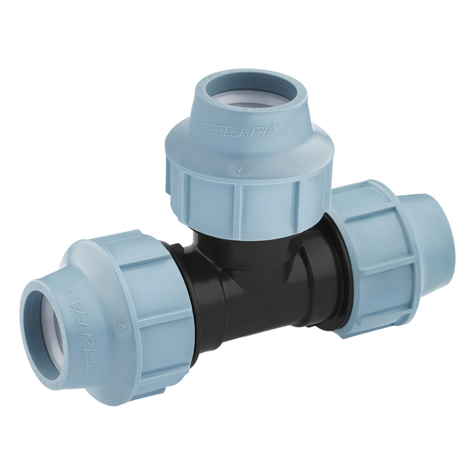 Трійник ПЕ SantehPlast 40 мм – це компресійне з'єднання, призначене для розгалуження трубопровідних систем. Він використовується для з'єднання трьох труб діаметром 40 мм, забезпечуючи надійне та герметичне з'єднання у системах водопостачання, зрошення та технічних трубопроводах.