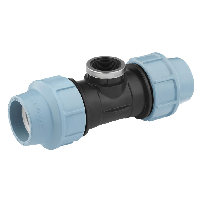Трійник ПЕ SantehPlast 63х1 1/2"х63 РВ - це надійне рішення для ефективного розгалуження трубопровідних систем з можливістю підключення до різьбових з'єднань.