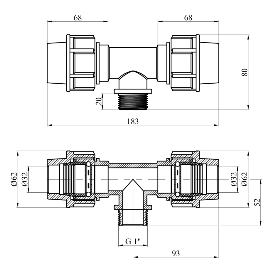 Опис до товару: Трійник ПЕ STR 32х1"х32 РЗ
