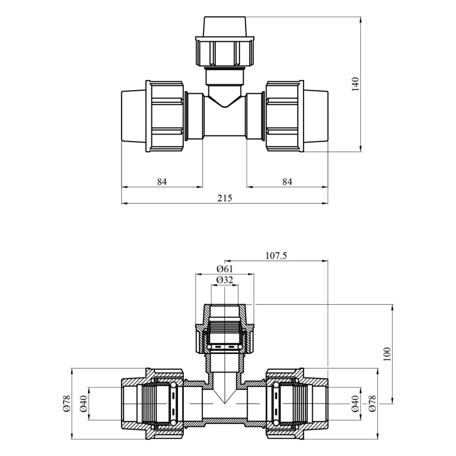 Опис до товару: Трійник редукційний ПЕ SantehPlast 40х32х40 мм