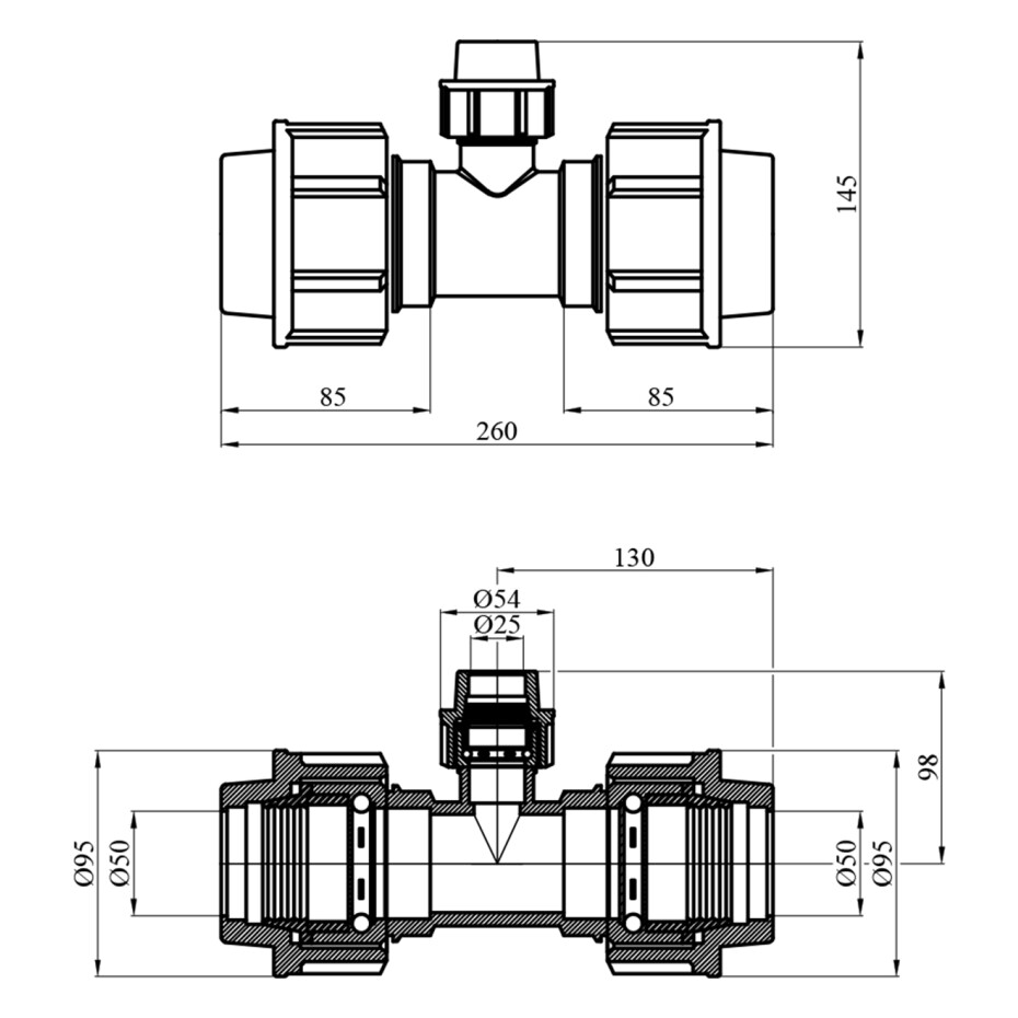 - Водопостачання – використовується для організації розгалужень у трубопроводах з різними діаметрами