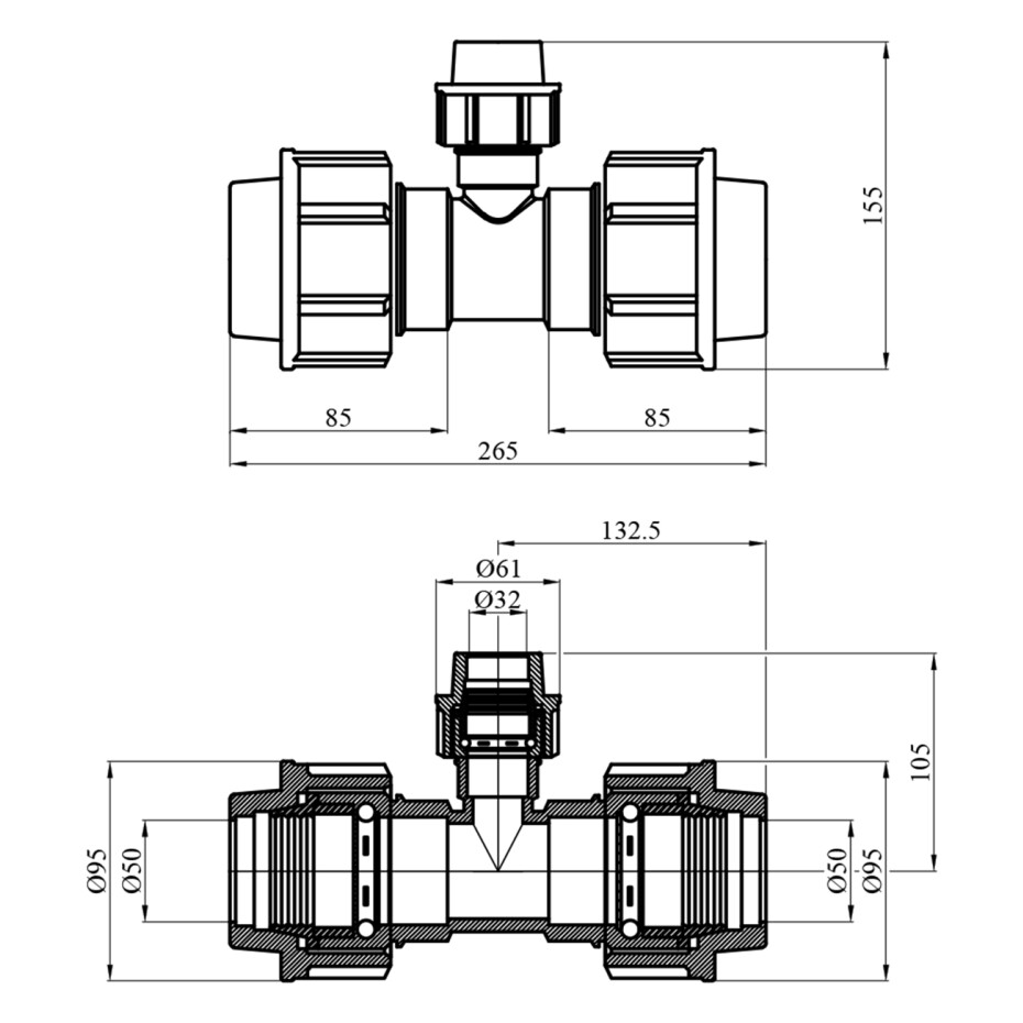 Опис до товару: Трійник редукційний ПЕ SantehPlast 50х32х50 мм