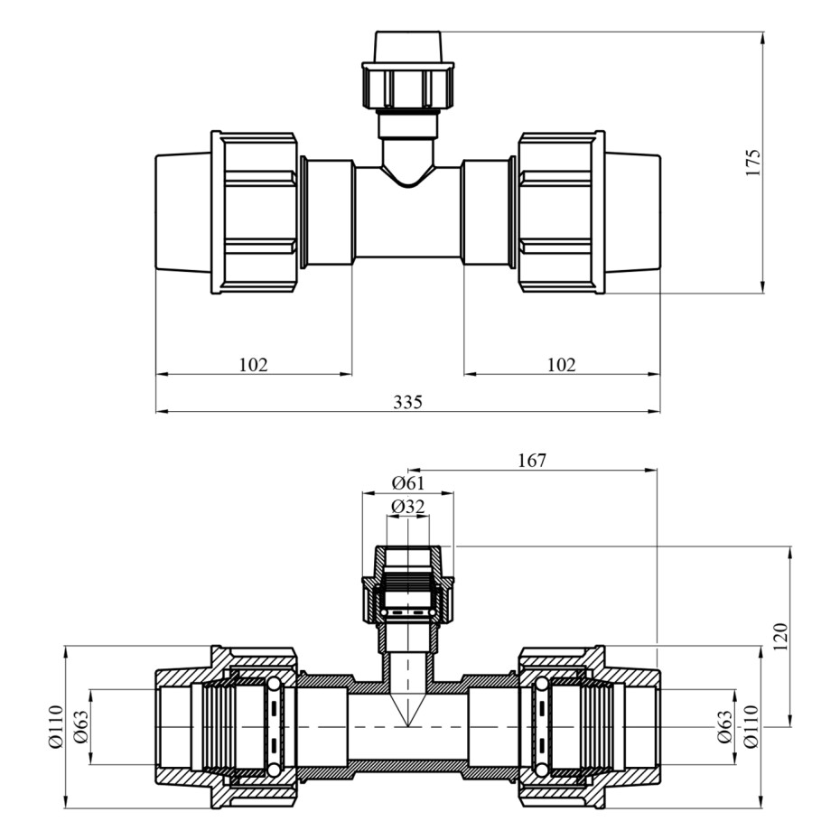 Опис до товару: Трійник редукційний ПЕ SantehPlast 63х32х63 мм