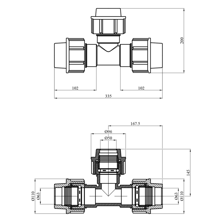 Діаметр підключення: 63х50х63 мм