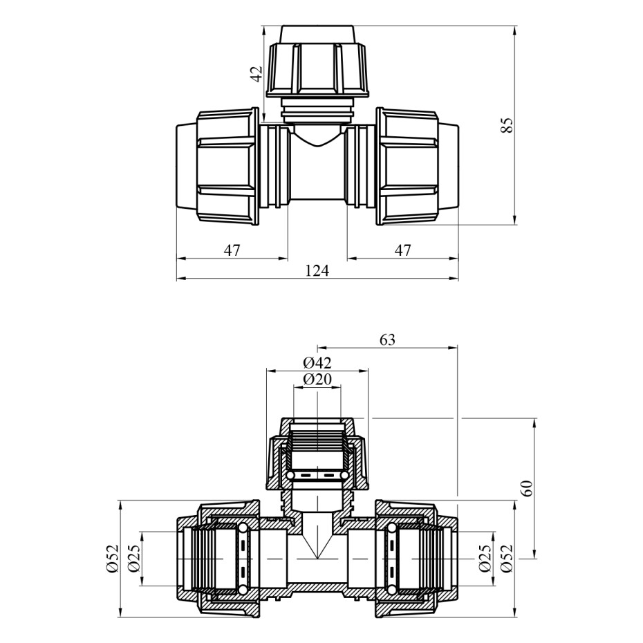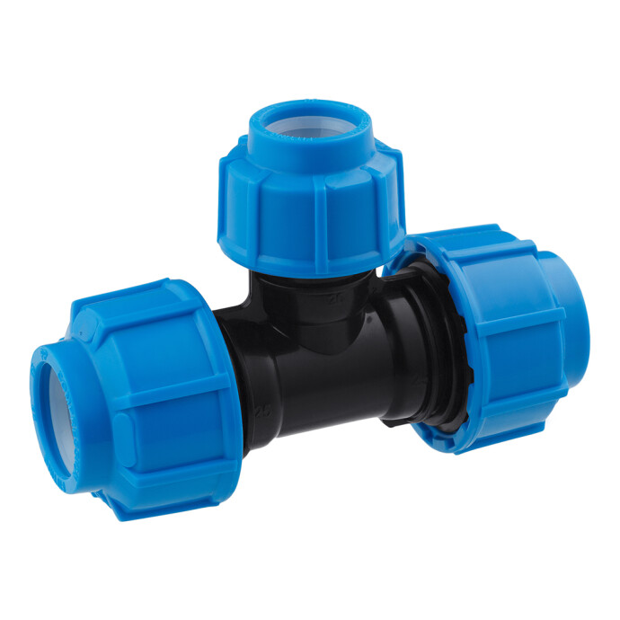 Трійник редукційний ПЕ SPT 25х20х25 мм — це компресійний (обтискний) фітинг, що використовується для створення відгалужень у трубопроводах із поліетиленових (ПЕ) труб. Його основна функція — з'єднання трьох ділянок поліетиленових труб, при цьому центральне відгалуження має менший діаметр, ніж основна магістраль.