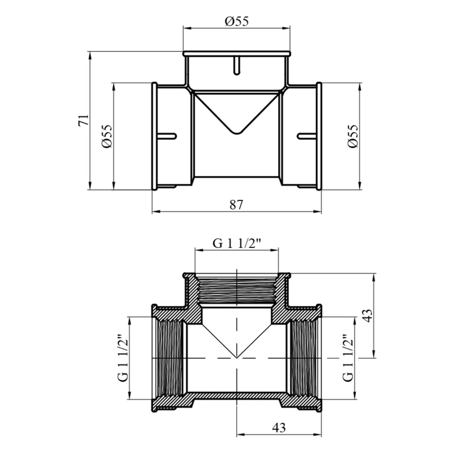 Тип з'єднання: трійник, призначений для рівномірного розподілу потоку рідини або теплоносія.