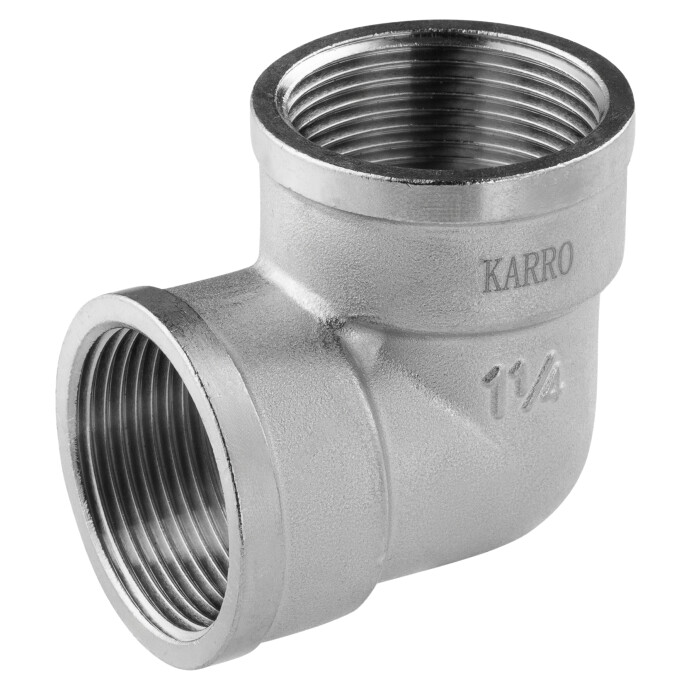 Кутник Karro 1 1/4" ВВ нікельований є надійним, довговічним та естетично привабливим елементом для зміни напрямку трубопроводу під кутом 90 градусів, забезпечуючи міцність та високу стійкість до корозії.