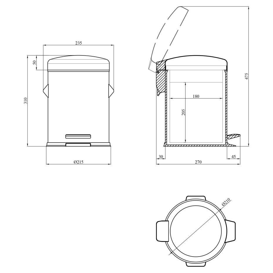 Відро для сміття Kroner KRP Graz - C406 5 л — практичне і довговічне рішення для дому або офісу. Корпус виготовлений з нержавіючої сталі, стійкої до вологи, корозії та механічних пошкоджень. Завдяки педальному механізму кришка відкривається без дотику рук, забезпечуючи максимальну гігієнічність. Компактний об'єм 5 літрів і стильний дизайн роблять відро зручним і естетичним елементом інтер'єру.