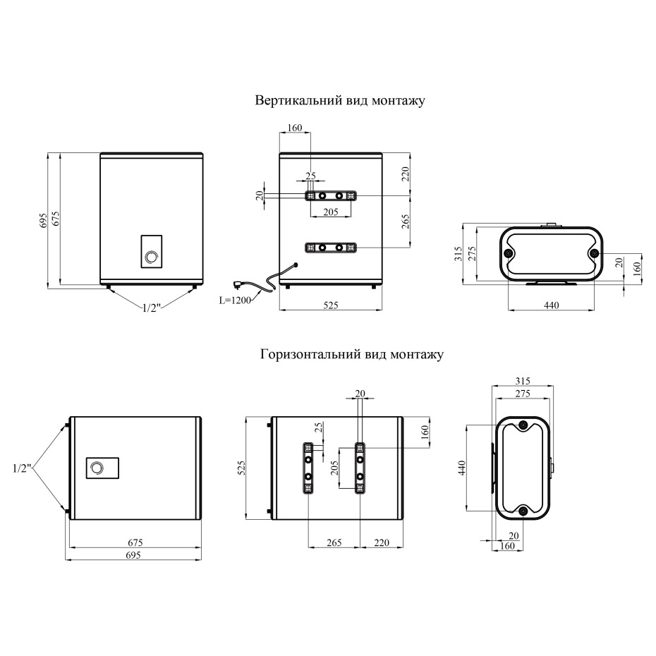 Комплектація: Водонагрівач, запобіжний клапан, розпірні анкери з L-гаком, силіконова трубка, наклейка ERP, інструкція.