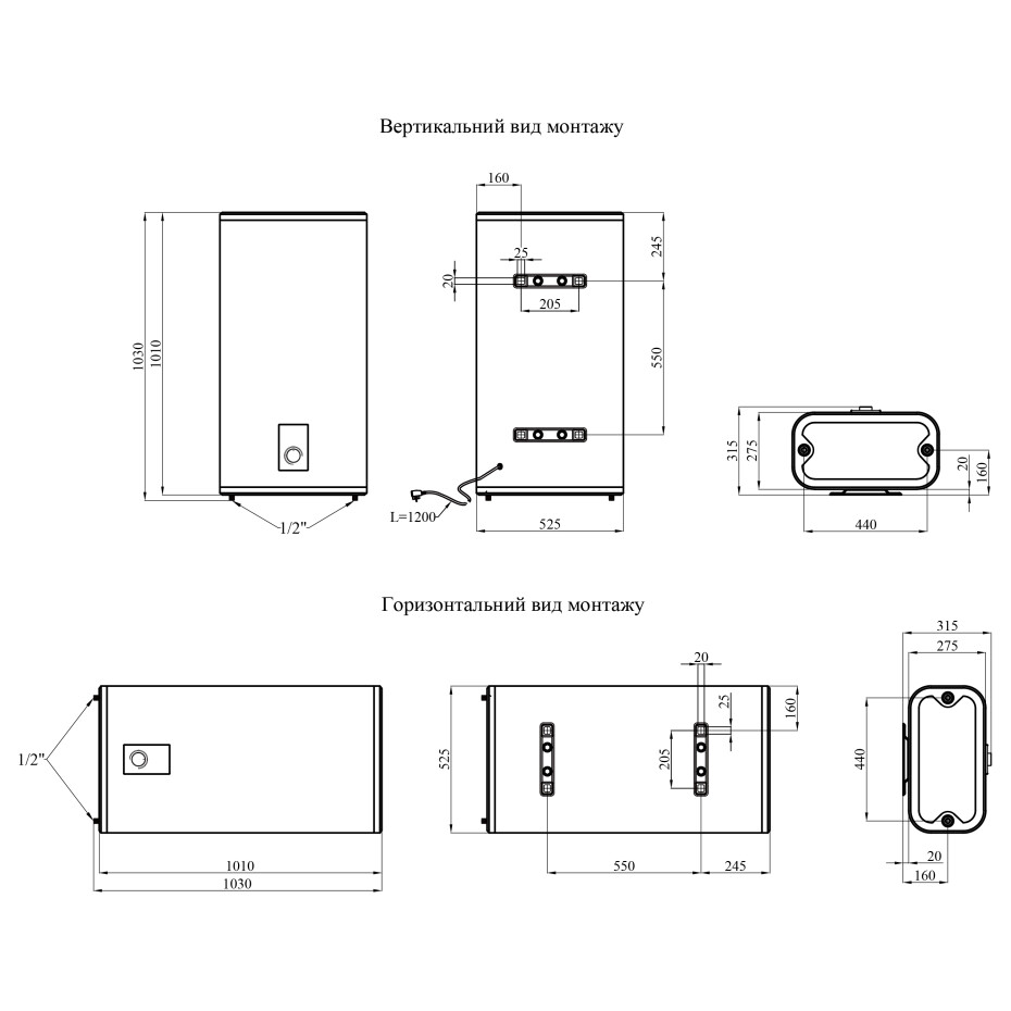 Комплектація: Водонагрівач, запобіжний клапан, розпірні анкери з L-гаком, силіконова трубка, наклейка ERP, інструкція.