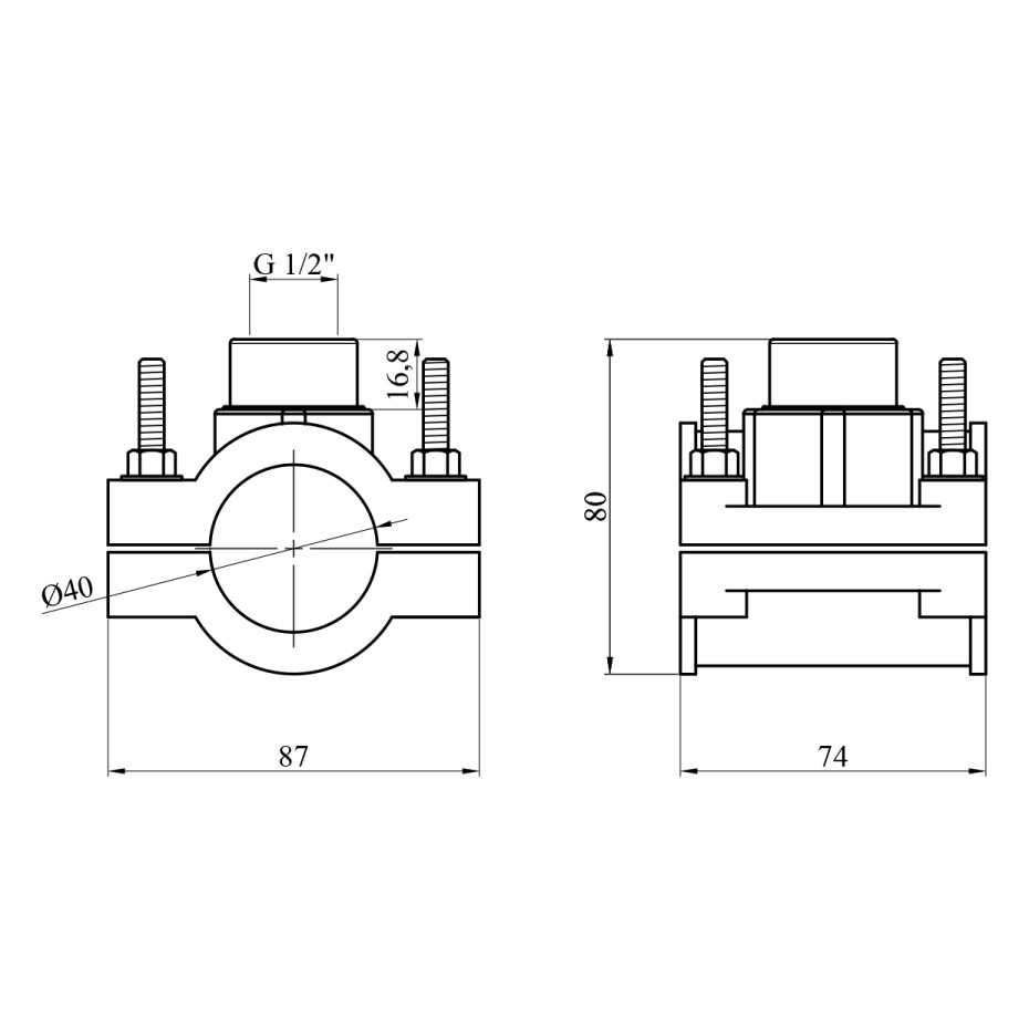 Комплектація: Сідлова врізка з хомутом, болт - 4 шт.