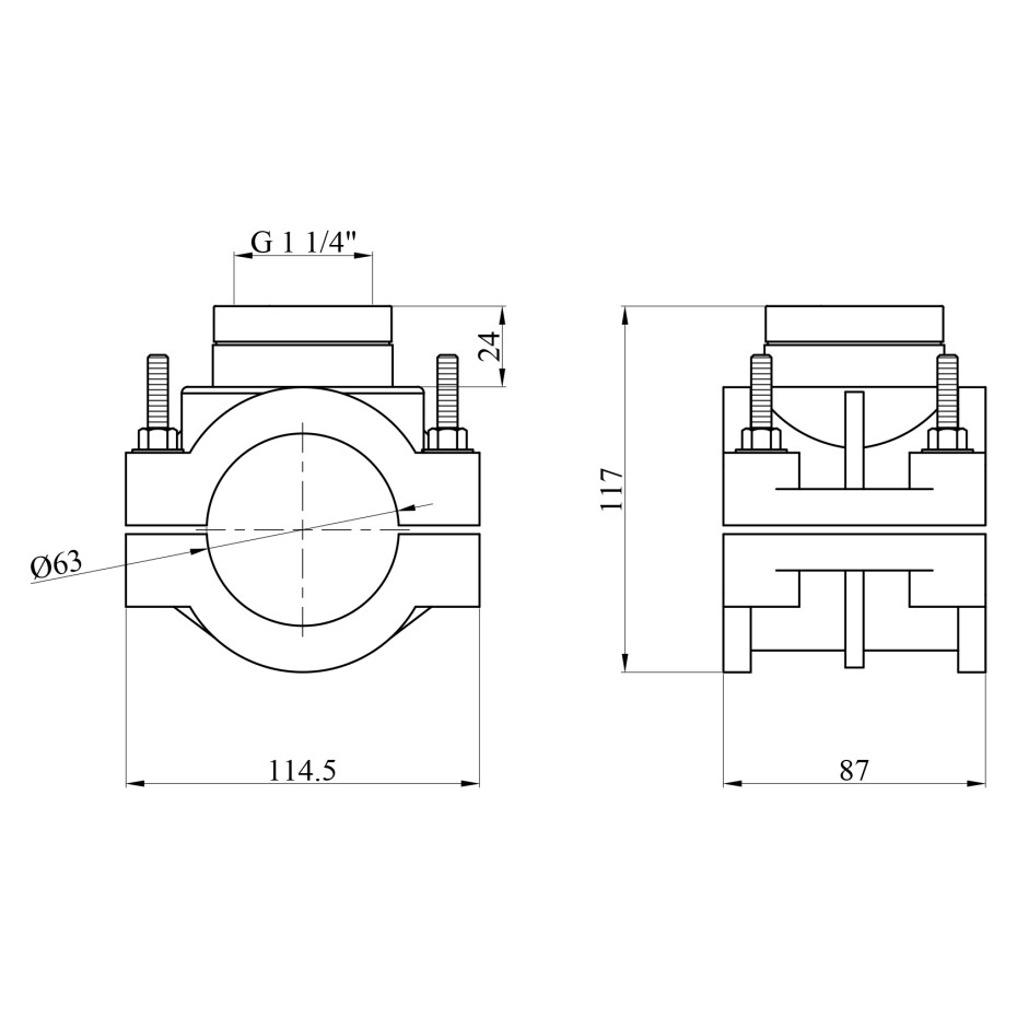 Комплектація: Сідлова врізка з хомутом, болт - 4 шт.