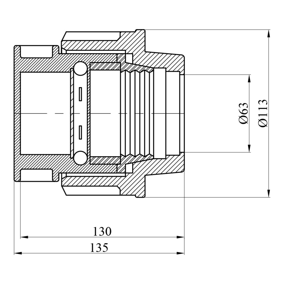 Заглушка ПЕ STR 63 мм — це компресійний (обтискний) фітинг, призначений для герметичного закриття кінця поліетиленової (ПЕ) труби діаметром 63 мм. Вона використовується для тимчасового або постійного перекриття потоку в трубопроводі.
