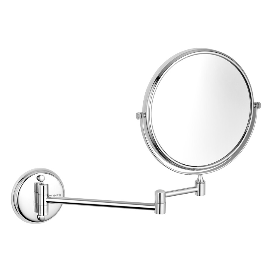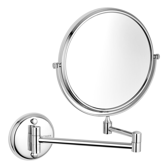 Кругле дзеркало з 2-кратним збільшенням обертається навколо своєї осі та легко фіксується під потрібним кутом. Завдяки телескопічному тримачу його можна наблизити або відсунути від стіни, а після використання — компактно скласти.