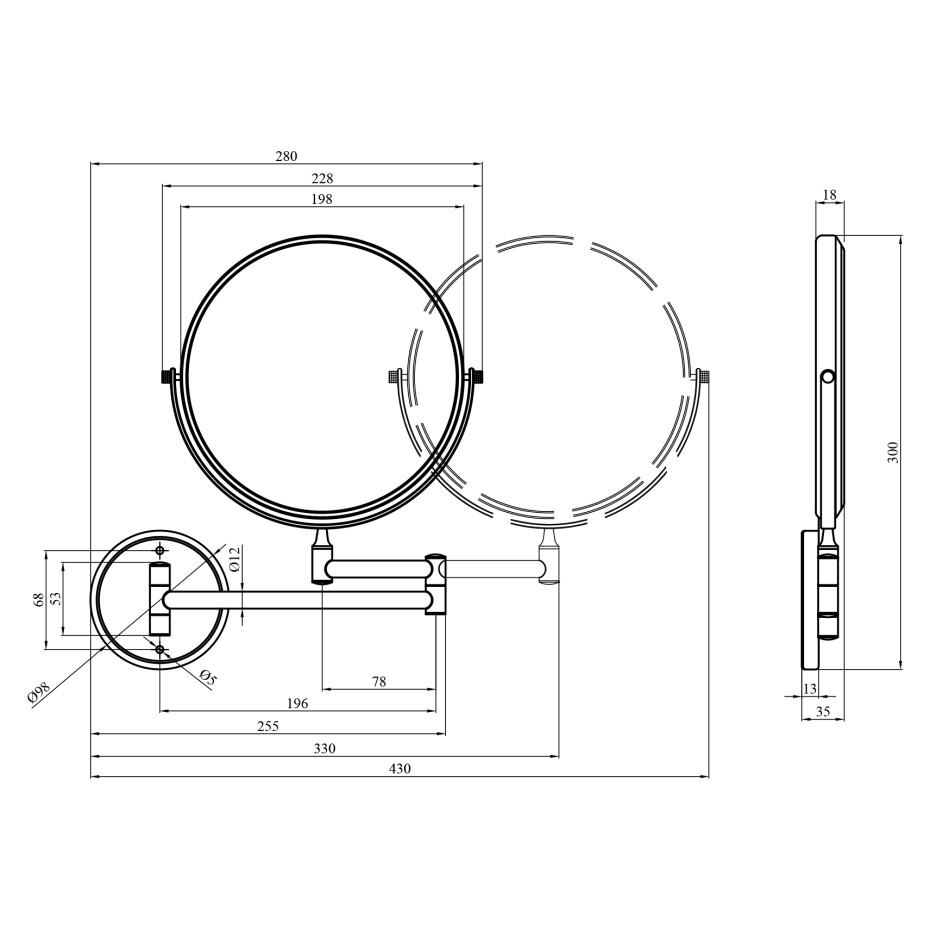 Кругле дзеркало з 2-кратним збільшенням обертається навколо своєї осі, дозволяючи легко змінювати кут огляду. Телескопічний тримач забезпечує плавне регулювання відстані — ви можете наблизити дзеркало під час макіяжу або гоління, а потім скласти його до стіни.