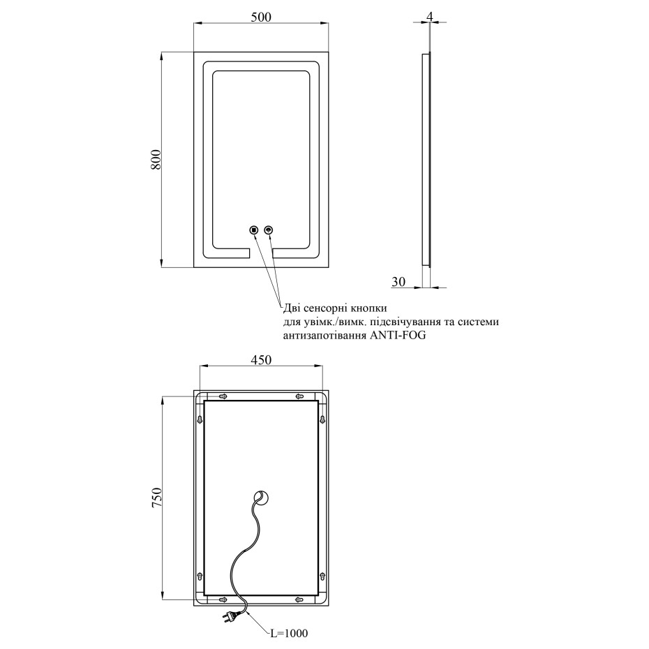 - ANTI-FOG – вбудована система захисту від запотівання, завдяки якій дзеркало залишається чистим навіть після гарячого душу.